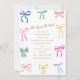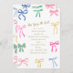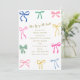 Célébrez la mariée à venir avec cette Coquette Bow Bridal Shower Invitation, avec de charmants arcs pastel en rose, bleu, vert et jaune jumelés avec un élégant script or et des détails personnalisables de l'événement. Parfait pour les thèmes inspirés de la coquette ou les amateurs de design ludique et sophistiqué, cette invitation est idéale pour les douches nuptiales, les soirées à thé ou les réunions intimes. Personnalisez avec le nom, la date et l’emplacement de la mariée pour créer une façon délicieuse pour les invités invitations de partager la célébration spéciale.