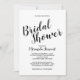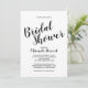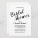 Script moderne Bridal Shower Invitation avec titre en noir de police de script moderne avec détails en noir moderne sans serif police sur arrière - plan blanc.