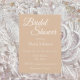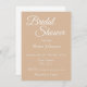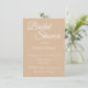 Style simple, invitation à la douche nuptiale qui comprend un arrière - plan de couleur beige tendance ainsi que le nom de la future mariée et l'heure et l'emplacement de l'événement, contact, etc, imprimé en blanc, stylisé. Personnalisez votre invitation en remplaçant le texte par vos propres informations sur la douche nuptiale. Sélectionnez le style et la quantité de papier d'invitation.