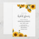 Bleu beau tournesol jaune et feuilles verts. Invitation minimaliste Fête des mariées