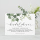 Simple et élégante, cette invitation à la douche nuptiale de bon goût a lierre et ferne maidenhair vert dans des tons aquarelles peints de lumière et vert foncé. Le thème bio se marie bien pour tout type de thème ou de lieu pour votre événement de douche nuptiale. La face de type de script de brosse moderne est utilisée pour épeler les mots "douche nuptiale" au-dessus de votre texte personnalisé. Il vous suffit de personnaliser l'exemple de texte affiché dans le modèle de design avec vos détails de douche de nage.