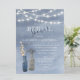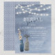 Ce design rustique présente une texture bleu aquarelle arrière - plan peinte avec un effet sombre. Des bouteilles anciennes au feuillage de branche d'olivier et d'eucalyptus créent une atmosphère unique et attachante d'ancien monde, illuminée par de belles lampes à cordes. Toutes sont créées à partir d'oeuvres originales de Lara. La typographie blanche et bleue met en valeur votre événement spécial et sont faciles à customiser avec vos propres détails.