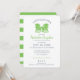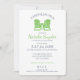 Vert pomme de printemps clair Adirondack chaises plage de la douche nuptiale avec texte bleu marine et rayures vert pomme et blanc sur le dos de cette élégante et classique invitation wedding shower pour le futur marié et marié. Personnalisez comme préféré.