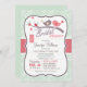Pink, ment green, taupe, et blanc mignon oiseaux, coeurs, fleurs, et mason jar nuptiale invitation wedding shower sur la sauge vert pâle paisley motif.