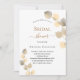 Un arrière - plan blanc décoré de sprigs d'eucalyptus dorés. Personnalisez et le nom de la mariée à être et les détails du parti. Lettres noires et dorées. Dos : arrière - plan de couleur dorée.