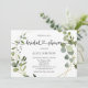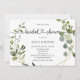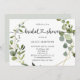 L'invitation à la douche nuptiale présente des feuilles d'eucalyptus verdoyants et un script mignon avec le coeur,