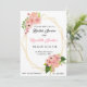 Élégante invitation à la douche nuptiale rose-rousse présente des bouquets de roses pastel aquarelle, hibiscus et autres fleurs somptueuses dans les tons rose-vif et pêche, avec de somptueux feuilles botaniques verts. Ce design moderne présente également un cadre en faux or et s'oppose à un arrière - plan blanc immaculé. Vous pouvez facilement customiser en cliquant sur "personnaliser ce modèle" pour entrer dans les informations de Fête des mariées.