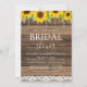 Budget Rustic Farmhouse Sunflower String Lights Mariage de dentelle Douche nuptiale Invitations sur arrière - plan de bois - comprend belle et élégante typographie de script avec moderne Country Farm House Sparkle pour la célébration spéciale de mariage.