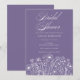 Élégante, moderne et d'inspiration nature, cette invitation à la douche nuptiale présente un riche arrière - plan lavande, des contours fleurs sauvages blancs délicats et un élégant script blanc. Parfait pour les douches nuptiales du printemps, de l'été ou de l'automne, avec un thème lavande, une ambiance de garden party ou un charme boho rustique. Idéal pour un brunch nuptial chic en plein air ou dans un cadre chaleureux et jardin. ✨ personnalisable | Boho Floral | Fête des mariées de jardin 🎨 esthétique : Lavande/pourpre, rustique, minimaliste, 🌸 lunette Parfait pour les douches nuptiales du printemps ou de l'automne, les rassemblements en plein air, les mariées de boho