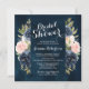 Belle invitation à la douche nuptiale fleurie boho avec aquarelle peinte à la main graphismes floraux / roses dans les tons riches de bleu marine et rose rousse / pêche et charmante écriture de style manuel police. Veuillez me contacter pour toute aide sur la personnalisation ou si vous avez besoin d'un autre produit avec ce design.