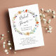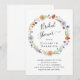 Invitation à la douche nuptiale d'inspiration boho avec une couronne d'aquarelle de fleurs sauvages floraux et "Fête des mariées" dans un élégant script swash.