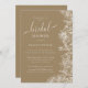 Cette invitation comprend des fleurs blanches à trait et de la calligraphie personnalisée. La couleur douce du champagne est la toile de fond parfaite pour cette invitation.
