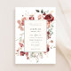 L'élégante invitation à la douche d'automne bordeaux présente des bouquets colorés de fleurs roses et bordeaux. Personnalisez avec vos informations ou cliquez sur "Cliquez pour customiser plus loin" pour modifier les styles, la taille et les couleurs des polices.