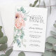 Joliment féministe invitation à la douche nuptiale au charme boho, cet élégant design aquarelle floral a doux rose pastel et roses pêche et pavots avec belle végétation d'eucalyptus traînant le long de la bordure gauche. Personnalisez le modèle de texte avec vos détails. Cette invitation est disponible en téléchargement numérique imprimé et sans papier.