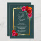Une élégante invitation à la douche à nuptiale turquoise bordée d'or et bordée de bordeaux.