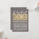 BELLE typographie moderne couleur gris/gris et or, mais avec un look et une sensation vintage doux et sublime. Ajoutez votre propre texte au modèle pour créer cette carte à plat populaire, de qualité, professionnelle, imprimée brillante invitation de douche nuptiale. Magnifique arrière - plan de papier couleur bleu vert SOFT avec une impressionnante typographie dorée.