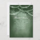 Célébrez la future mariée avec nos feux à cordes d'arbres verts invitation à la douche nuptiale de pays. Ce charmant design arbore un arbre rustique orné de lampes à cordes, créant une atmosphère chaleureuse et accueillante. Parfait pour les douches nuptiales en plein air et à thème champêtre, cette invitation unique séduira vos invités et donnera le ton parfait pour votre célébration.