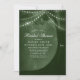 Invitation tes proches pour célébrer la future mariée avec cette charmante invitation à la douche nuptiale. Avec une silhouette d'arbre rustique ornée de lampes à cordes scintillantes sur fond vert apaisant, cette invitation donne le ton d'un rassemblement chaleureux. Parfait pour une douche extérieure ou sur le thème du jardin, ce design ravira vos invités.