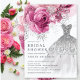 Belle invitation à la douche nuptiale rose & argent fleurie avec une robe mariage glamour. Retournez notre invitation wedding shower pour voir un dos à floral de coordination pour une touche spéciale supplémentaire