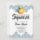 Main Squeeze Lemon Méditerranéen Fête des mariées Amusante Invitation Invitations à une belle journée d'amour et citrons avec cette incroyable "Main Squeeze" nuptiale douche Invitation, avec des citrons jaune vif jumelés avec les motifs classiques de tuiles bleues méditerranéennes. Mélange parfait de charme et d'élégance, ce design apporte la chaleur de la côte amalfitaine ou des îles grecques à votre fête de mariage. Entièrement personnalisable avec le nom, la date, l’heure, le lieu et les détails RSVP de la future mariée, cet invitation donne le ton d’une douche élégante et mémorable, idéale pour les événements d’été, les brunchs jardins ou les thèmes de destination.