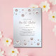 Invitation moderne et simple de douche nuptiale avec perles blanches bordé sur un dégradé gris arrière - plan et texte calligraphie dynamique.