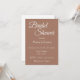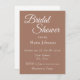 Style simple, invitation à la douche nuptiale qui comprend un arrière - plan de couleur marron mocha tendance ainsi que le nom de la future mariée et l'heure et l'emplacement de l'événement de fête, contact, etc, imprimé en blanc, stylisé. Personnalisez votre invitation en remplaçant le texte par vos propres informations sur la douche nuptiale. Sélectionnez le style et la quantité de papier d'invitation.