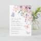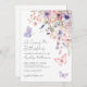 Il me donne des papillons Invitation de la douche nuptiale Célébrez la future mariée avec cette invitation enchanteresse et fantaisiste, parfaite pour une douche nuptiale thématique "Il me donne des papillons". En haut, l'expression "He Gives Me Butterflies" s'affiche dans un script élégant, mais peut être customisée ou retirée pour convenir à votre style. Le design se caractérise par un agencement délicat de fleurs sauvages d'aquarelle et de verdure, avec des papillons roses et violets qui flottent à l'avant. La palette de couleurs douces (rose roux, rose poussiéreux, lilas, lavande, violet et vert frais) ajoute une ambiance romantique et rêveuse. Un seul accent papillon sur le dos complète le look avec un détail doux et subtil. Tout le texte est mis dans un mélange de script manuscrit et de polices serif propres pour une esthétique équilibrée, moderne mais classique. Parfait pour les fêtes de jardin du printemps ou de l'été, les rassemblements en plein air ou toute célébration inspirée de la nature. Disponible sous forme d'invitation imprimée ou de téléchargement numérique. Vous pouvez customiser pleinement le libellé, les polices et les couleurs pour correspondre à votre thème de douche nuptiale.