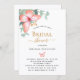 Un arrière - plan blanc chic. Décoré d'un papillon rose vif et doré rose, de feuilles d'eucalyptus vert à l'eau, de sprigs, de verdure et d'une fausse feuille d'or. Personnalisez et ajoutez le nom de la mariée à être et les détails du parti. Lettres noires et dorées.