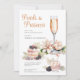 Cette combinaison d'une douche nuptiale et d'une invitation au brunch comprend un élégant verre de proscecco en ambre et en or rose, des desserts succulents aux accents colorés assortis, des perles, des pétales et du parquet. Toast the bride-to-be, dans un décor charmant et compagnie chère.