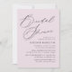 Simples invitations photo nuptiales avec "Fête des mariées" affichées dans un script de calligraphie noir avec un arrière - plan lavande violet. Personnalisez les invitations à la douche nuptiale lavedner avec le nom de la future mariée et les détails de la douche ci-dessous. L'invitation de douche nuptiale moderne s'inverse pour afficher votre photo de fiançailles vertical.