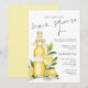 Fête des mariées principale Squeeze Limoncello. Disponible numériquement et imprimé. Ce joli design à thème citron a les mots Main Squeeze dans un script moderne. Le reste du texte que vous pouvez facilement personnaliser. Avec une illustration d'aquarelle et coordonnant l'arrière - plan jaune clair de l'autre côté.