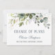 Fête des mariées reporté le changement de plans Eucalyptus Invitation. Pour plus de personnalisation, cliquez sur le lien "customiser plus" et utilisez notre outil de conception pour modifier ce modèle. Si vous avez besoin d'aide ou d'articles correspondants, veuillez me contacter.