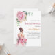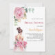 Une invitation moderne, élégante et glamour pour une douche nuptiale. Un arrière - plan blanc décoré d'une grande rose rose, la mariée portant une robe mariage. Le nom est écrit avec un script de style moderne écrit à la main. Personnalisez et ajoutez les détails de votre fête.