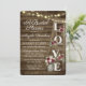Echelle en bois vintage aux lettres LOVE et bouquets de roses bordeaux décorent ce pays invitation à la douche nuptiale rustique. Des lumières scintillantes ajoutent du charme à l'arrière - plan en bois de grange foncé.
