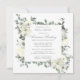 L'élégante invitation à la douche nuptiale présente un cadre botanique de fleurs blanches et de feuilles verts profonds.