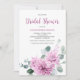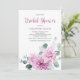 Élégante invitation à la douche nuptiale fleurie moderne au milieu de l'été présente un bouquet de dahlia aquarelle dans les tons violet et rose, avec des feuilles botaniques verdoyants et eucalyptus. S'il vous plaît trouver d'autres designs et variantes de mon magasin "moment de la fête".