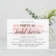 Invitation de douche nuptiale virtuelle avec un trait de pêche à l'aquarelle moderne et les détails de votre fête dans une police moderne. L'invitation peut être facilement customisée pour votre événement en ajoutant les détails de votre événement, le style de police, la taille et la couleur de police et le libellé de votre choix en cliquant sur le bouton "Personnaliser".