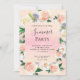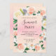 Une invitation estivale en blanc, corail et pêche. Un arrière - plan rose d'or et de rose vif. Décoré de grandes fleurs verdoyantes aux couleurs de l'eau, de fleurs blanches, de corail et de pêche. Modèle pour votre nom et informations de fête. Le mot Eté est écrit avec un script de style moderne à la main. Dos : or rose, arrière - plan rose vif. Parfait pour une fête d'été en famille, un extérieur, jardin, jardin, barbecue, barbecue, tea party.