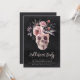 Une invitation de fête d'Halloween chic et effrayante avec une illustration de crâne floral surmontée de fleurs aquarelles roses et violettes sur un fond noir fumé. Personnalisez cette invitation de fête d'Halloween unique et élégante avec vos détails d'événement en lettrage blanc.