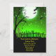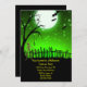 Un squelette de marche effrayant dans une cour grave avec une pleine lune et un arrière - plan de ciel vert. Design très amusant et effrayant pour vos invitations à la fête d'Halloween.