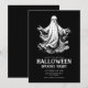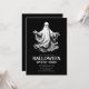 Invitation effrayante pour une fête d'Halloween avec un fantôme noir et blanc.