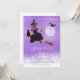 Invitation à la fête d'Halloween à thème sorcier! Ce design captivant présente une scène magique de nuit pleine lune, où la jeune sorcière et son chat noir s'envolent à travers un ciel de nuit violet sur leur balai. Idéale pour les jeunes sorcières et sorcières, cette invitation promet une nuit remplie d'aventures enchanteresses et de plaisir éffrayant. Que commence la magie d'Halloween !