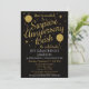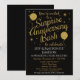 Cette invitation de fête d'anniversaire de mariage surprise festive et amusante présente un fond noir avec des ballons et des étoiles à paillettes dorées. Elle a une élégance et une fantaisie avec une touche stylée. Pour les 5 ans, 10 ans, 15 ans, 20 ans, 25 ans, 30 ans, 35 ans, 40 ans, 45 ans, 50 ans ou toute autre année entre !