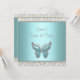 Invitation à une fête d'anniversaire élégante en ivoire et argent avec papillon bleu sarcelle et argent pour une douce seize ans.