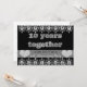 Créez vos propres invitations personnalisées et chic pour votre dixième anniversaire de mariage - Sur le devant, un texte en 3D qui ressemble à du métal brossé gris, à l'étain ou à l'aluminium indique "10 ans ensemble". Sur une bande translucide noire, en lettres ombrées, il est écrit "Vous êtes invité à une fête d'anniversaire". De faux cœurs en diamant ornent chaque extrémité. Les bordures supérieure et inférieure sont ornées d'une bordure en dentelle de diamants. Au verso, des lettres en 3D noires pour vos informations de fête d'anniversaire de mariage personnalisées et modernes. Personnalisez comme vous le souhaitez. Visitez notre boutique Zazzle.com/angela65 pour plus de fournitures pour une fête de dixième anniversaire de mariage.