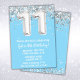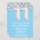Invitation Fête du 11e anniversaire en argent bleu clair