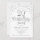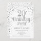 Invitation de fête du 20e anniversaire. Design élégant en blanc et faux argent parties scintillant. Comprend des polices de caractères et des confettis stylisés. Message-moi si vous avez besoin d'âge personnalisé.