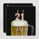 Bougie d'anniversaire dans une tasse de bière pour l'invitation de fête de 21e anniversaire.
