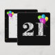 Texte en noir et blanc gras sur arrière - plan noir avec ballons colorés pour invitation de fête de 21e anniversaire.
