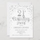 Invitation de fête du 21e anniversaire. Design élégant en blanc et faux argent parties scintillant. Comprend des polices de caractères et des confettis stylisés. Message-moi si vous avez besoin d'âge personnalisé.